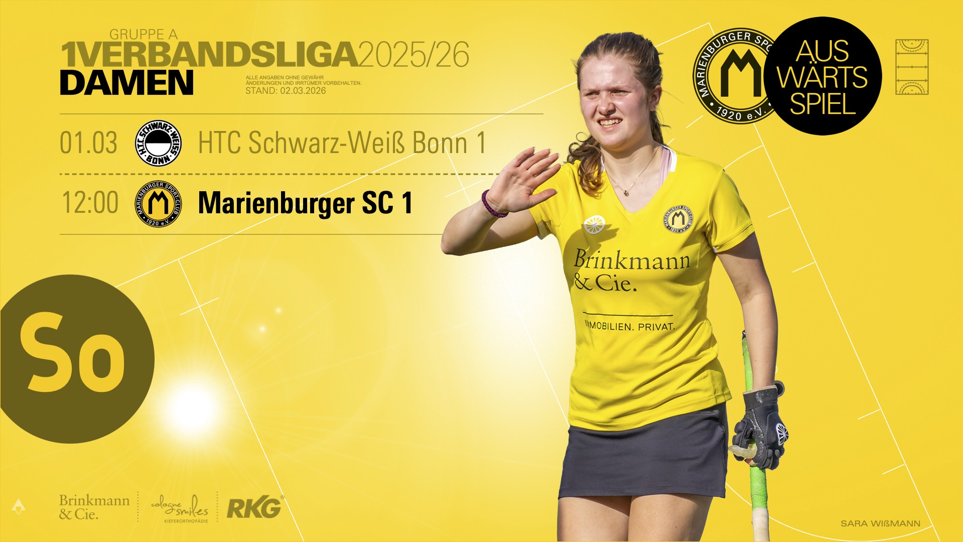 Am Sonntag, 1. März, um 12:00 Uhr trifft die 1. Hockeydamen bei HTC Schwarz-Weiß Bonn auf die 1. Hockeydamen des Gastgebers. Das Hinspiel endete 3:6. Es ist der letzte Auftritt dieser Spielzeit – eine Gelegenheit, sich noch einmal geschlossen zu zeigen, bevor in einigen Monaten die nächste Aufgabe wartet.