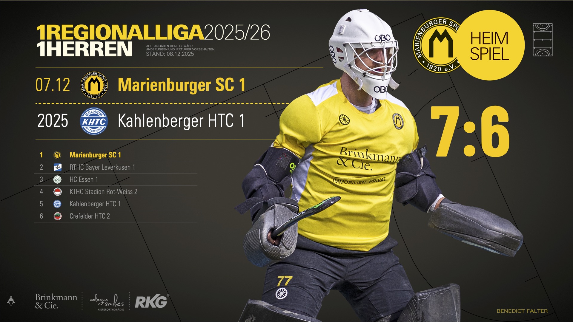 In einer intensiven Begegnung hielten die Hausherren ihren Rhythmus und antworteten auf jede Wendung mit Konsequenz im Abschluss. »Momo« Wierlemann traf zum 3:2 und später zum 5:5, ehe Kahlenberg erneut ausglich. Er sorgte schließlich mit dem Treffer zum 7:6 für die Entscheidung und krönte damit seine überragende Leistung. Neben ihm überzeugte auch Leopold von Nathusius, der früh zwei wichtige Akzente setzte.