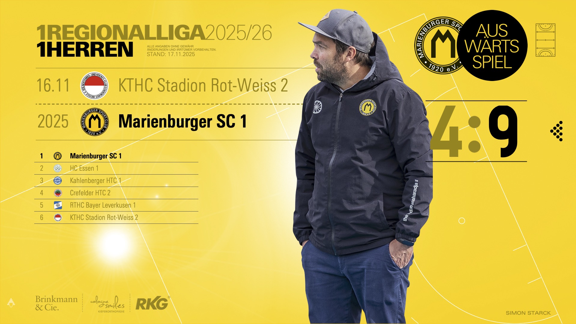 Nach diesem Auftritt geht der MSC mit Rückenwind in die nächsten Wochen. Die Tabelle ist nach nur einem Spieltag noch wenig aussagekräftig, doch der Auftakt zeigt, dass das Team sowohl spielerisch als auch mental bereit ist, in der 1. Regionalliga eine Rolle zu spielen. Am kommenden Wochenende pausiert die Liga. Am übernächsten Samstag, den 29. November, um 18:00 Uhr, trifft die 1. Hockeyherren in der »Cologne Smiles Sporthalle« auf den Crefelder HTC – ein Gradmesser, der früh zeigt, welches Potenzial im Kader steckt.